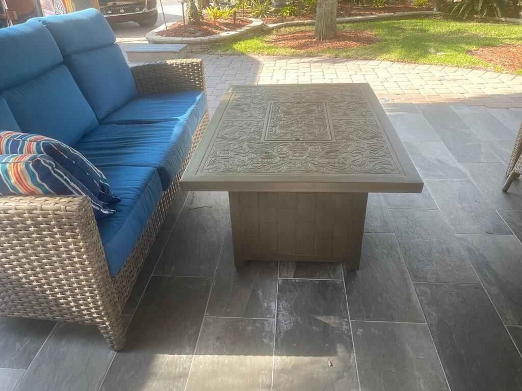 Please do not move the fire table - it is connected to the propane gas line. For use of the fire table, please contact the owners directly.