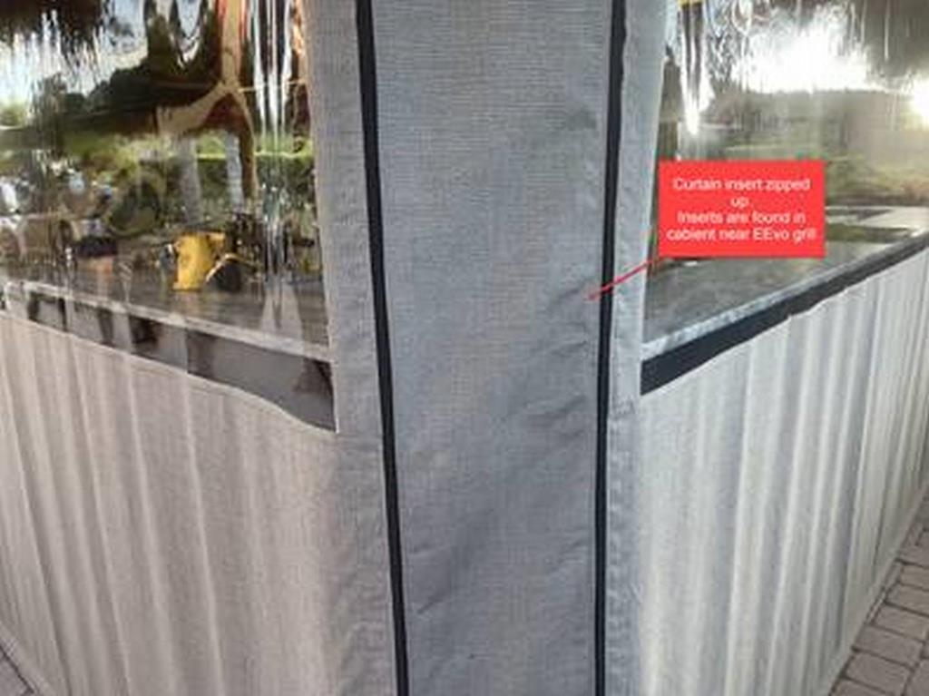 The zip inserts for the curtains are stored under the EVO in the kitchen.