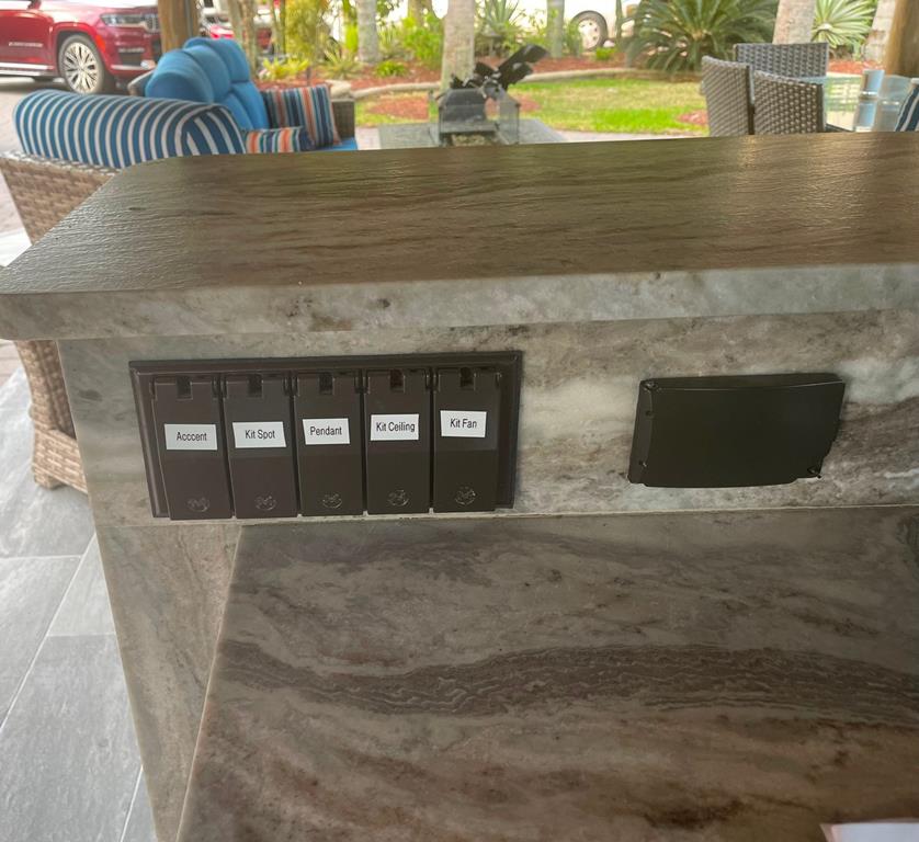 The lot has Lutron smart light switches installed. These lights are set on a schedule so the landscape and tiki lighting will come on each night at sunset and will turn off automatically at 10:00 PM.
